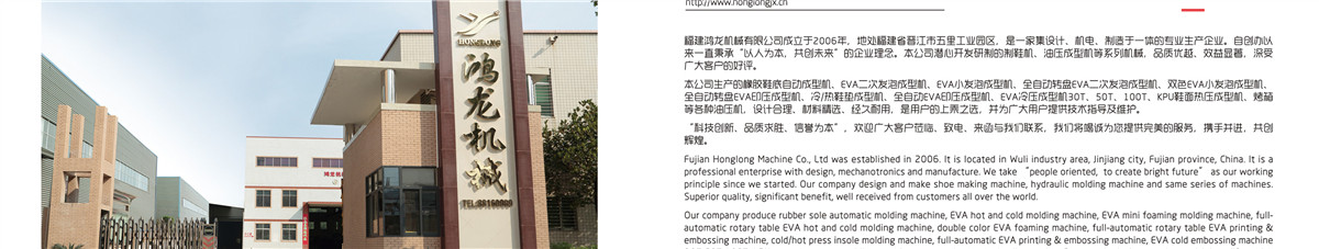 鸿龙机械有限公司地处福建省晋江市高新科技园区是一家集设计、机电、制造于一体的专业生产企业,潜心开发研制的制鞋机、油压成型机等系列机械。品质优越、效益显著、受到广大客户的好评。 本公司生产的橡胶鞋底自动成型机、EVA二次全自动成型机、EVA二次成型机、EVA小发泡成型机(80T、150T、200T)、冷/热鞋垫成型机、EVA印压自动成型机、EVA冷压成型机30T、50T、100T、烤箱等各种油压机,设计合理、材料精选,经久耐用,是用户的上乘之选,并为广大用户提供技术指导及维护。 “科技创新、品质求胜、信誉为本”,欢迎广大客户来人、来电来函与我们联系,我们将竭诚为您提供完美的服务,携手并进,共创辉煌。 |